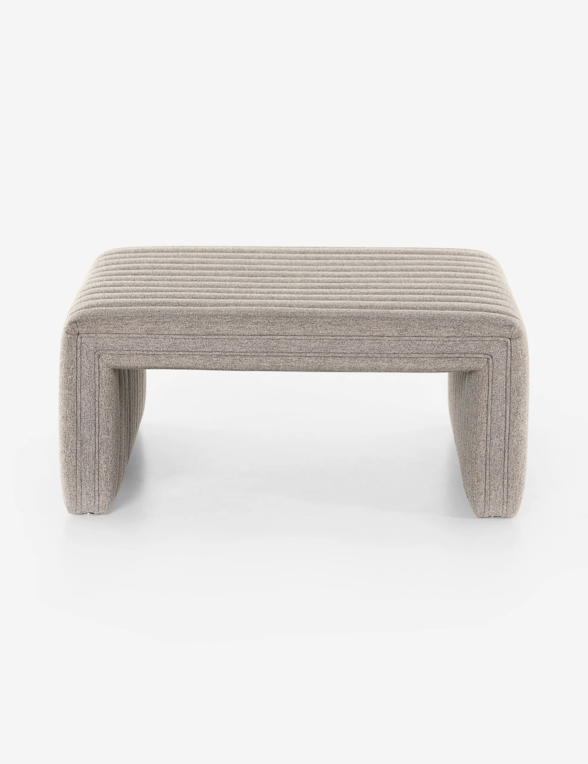 Upholstered in a heather gray fabric with channeling for crisp, understated texture, this ottoman will elevate any cozy space with its tailored lines and clean profile. With a large soft surface, this ottoman can be a dynamic fit for sprawling seating or even styled as a coffee table in a laid-back living space.