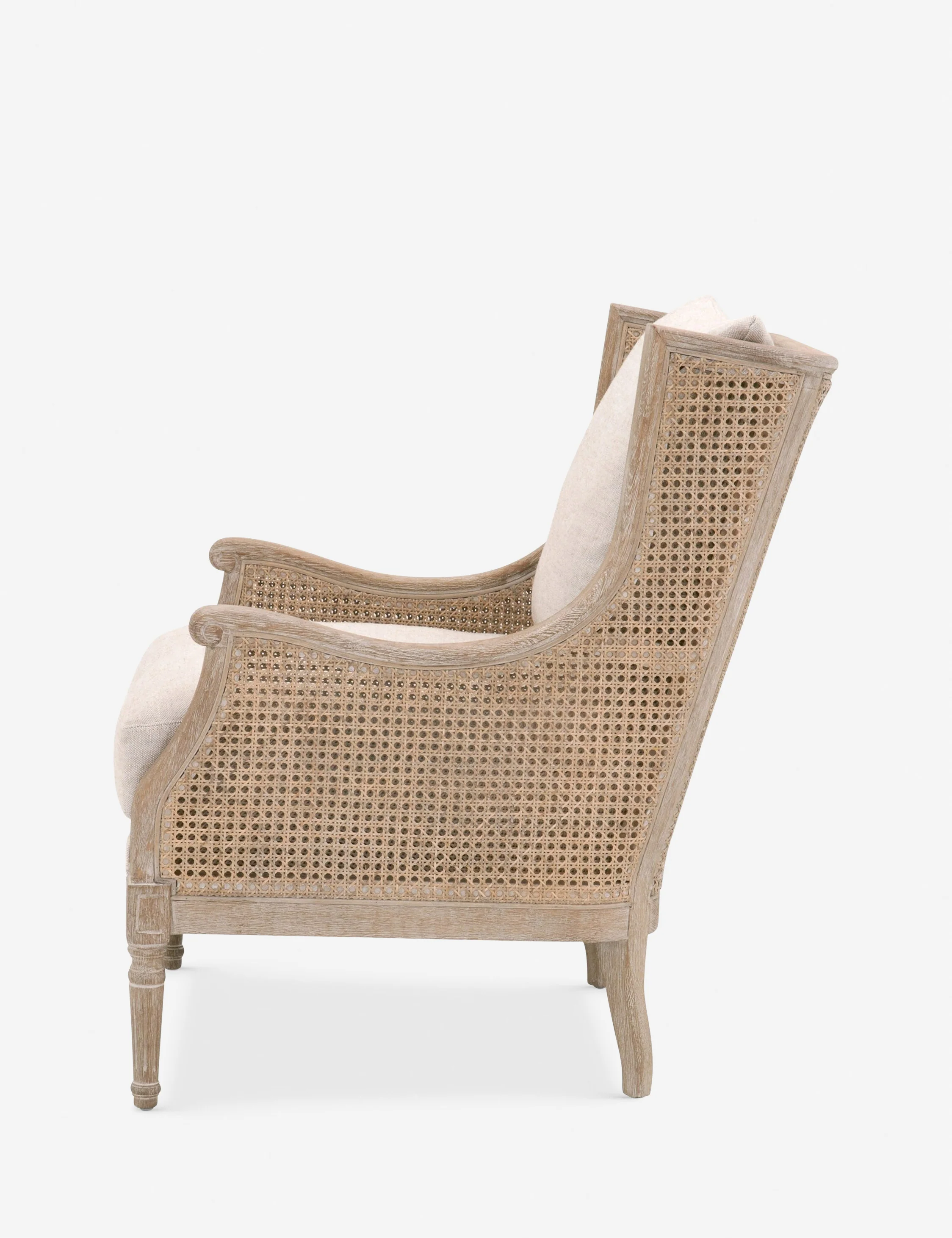 There's a distinct refined appeal to this accent chair, with its high back frame and rattan detailing. Crafted from a solid birch frame, the mixed wooden and woven materials pair with natural-hued upholstery for a tonal look. Sit this decorative chair in a reading nook or in a home office.