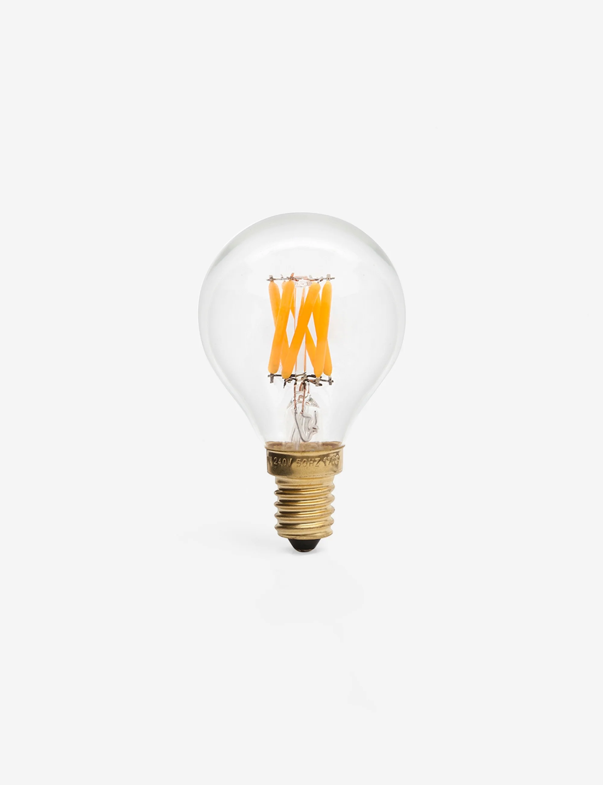 The Tala Pluto lightbulb features a small, round clear glass frame and crossed filaments for a classic vintage feel. This bulb creates a warm and bright atmosphere, perfect for offices or dens.