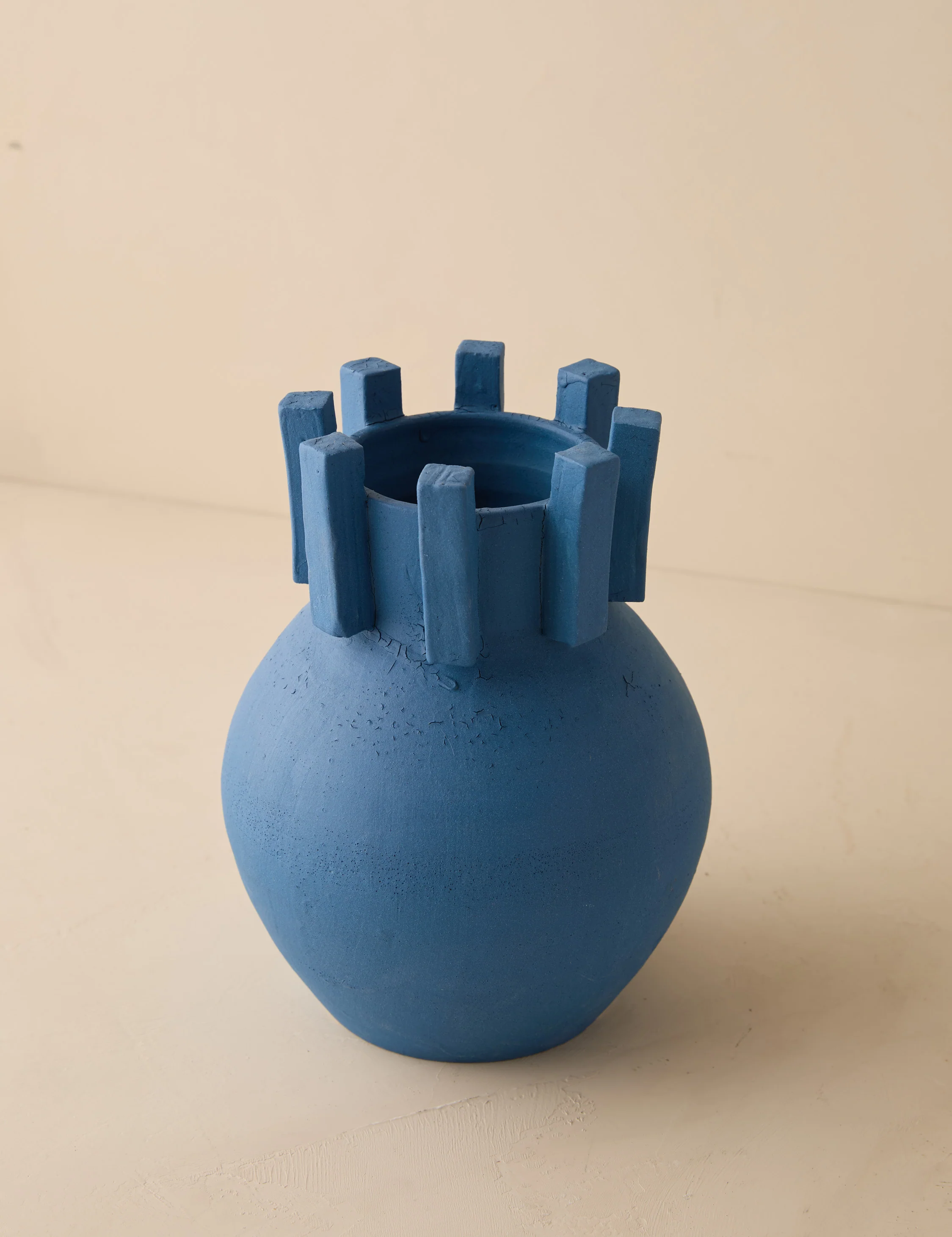 Ceramic lug details and a dry-slip finish give the Trails vase its expressive character, with natural variation from piece to piece. The deep blue tone brings depth while underscoring the hand-worked quality.